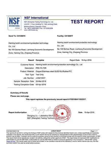 2018, βραβεύτηκε ως "Top 10 κατασκευαστές καθαριστικών νερού στην Κίνα".
